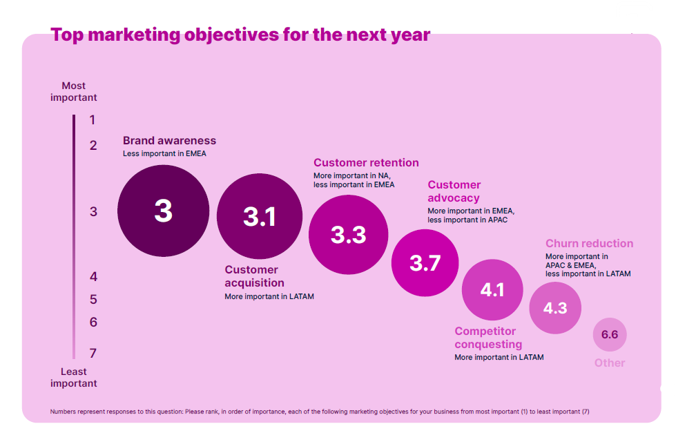 Instagram die de uitgaven domineren. De uitgaven aan social media stegen bij alle marketeers wereldwijd met 53%, aanzienlijk meer dan de totale stijging van de uitgaven aan tv en radio. Klantenwerving is hun tweede doelstelling. Dit toont aan dat marketeers hun inspanningen moeten richten op het volledige klanttraject.