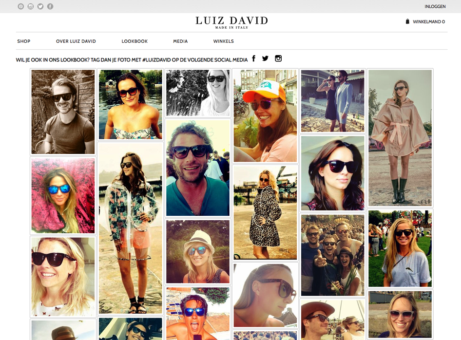 Christiaan Bekker opende begin dit jaar een webwinkel voor een nieuw zonnebrillenmerk van eigen makelij: Luiz David. Hij besloot een voor ons land nieuwe manier van marketing te gebruiken; foto’s die dragers van de zonnebrillen plaatsen op sociale media, verschijnen na selectie op Luizdavid.com. ‘Selfiemarketing’, noemt Bekker het zelf. ‘Ik kan zien dat heel veel kopers vanaf ons lookbook komen.’