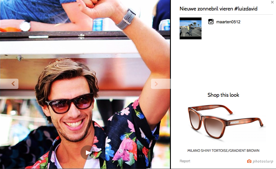 Bekker zocht naar een onderscheidende manier om zijn brillen aan de man of vrouw te brengen. “Virtueel monturen passen is leuk, maar zeker bij zonnebrillen is perceptie feitelijk belangrijker dan het product zelf. Op Amerikaanse sites was ik gestuit op visual commerce, waarbij foto’s van klanten op sociale media worden gebruikt. De bekende Amerikaanse aanbieders Olapic en Chute bedienen echter vooral hele grote klanten. Denk aan Nike en Asos. Ik zocht verder en via Google kwam ik toen uit bij Photoslurp.”
