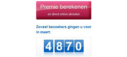 Mijn conclusie over het woord direct is misschien te snel getrokken. Social proof werkt goed bij AEGON verzekeringen met de CTA button “Premie berekenen en direct online afsluiten”. Omdat ‘en direct online afsluiten’ een minder prominente plek op de button heeft en minder groot is, lijkt me dat bezoekers vooral aandacht besteden aan de zin ‘Premie berekenen’.