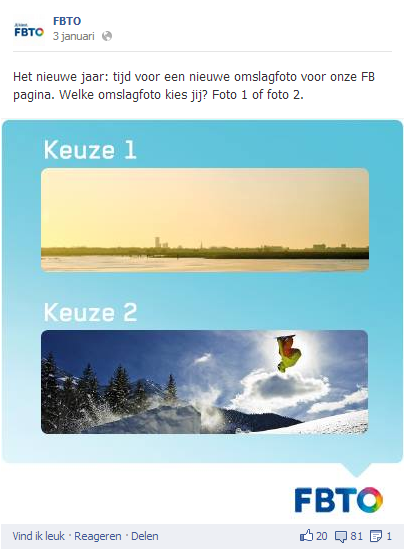 “Ik zal wat voorbeelden geven van activiteiten die bij ons goed werken. We laten zien wie bijvoorbeeld de mensen zijn die je vragen beantwoorden via social media, maar ook wie er zorgen voor de content op de site. Meestal gecombineerd met een vraag aan onze fans. Bijvoorbeeld hoe stel jij het liefst je vraag aan FBTO?”
