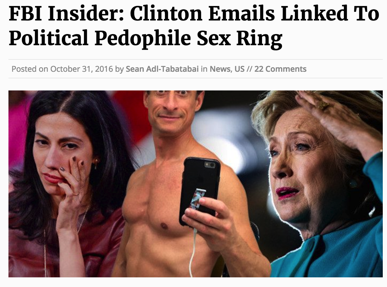Hoe waar bovenstaande woorden zijn, laat de recente complottheorie rondom ‘Pizzagate‘ zien. In aanloop naar de presidentsverkiezingen wordt het Gmail-account van John Podesta, de campagneleider van Hillary Clinton, gehackt en belandt een gedeelte van zijn e-mails op Wikileaks. In een van de e-mails schrijft James Alefantis, eigenaar van pizzarestaurant Comet Ping Pong in Washington D.C., dat hij een benefietavond in zijn restaurant wil organiseren om geld in te zamelen voor de campagne van Clinton.