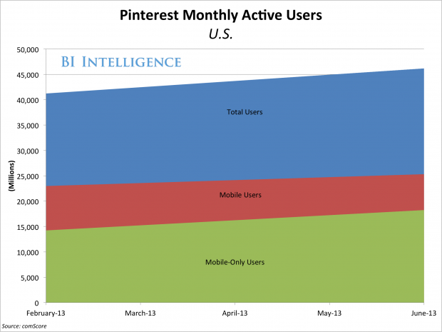 Ook Pinterest wordt veel gebruikt vanaf mobiele apparaten. In de VS gebruikt 55 procent van de Pinterestgebruikers een mobiel apparaat. Opvallend is dat Pinterest in verhouding een zeer grote groep gebruikers heeft die Pinterest alléén via mobiel gebruiken: 35 procent van alle gebruikers.