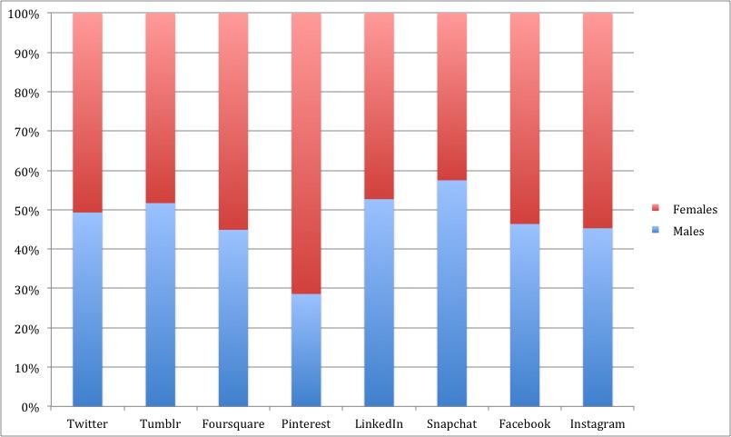 Kenmerkend aan Pinterest is dat het met name populair is onder vrouwen. Uit data van comScore blijkt dat – hoewel het verschil langzaam kleiner wordt – 71,4 procent van de bezoekers vrouw is.
