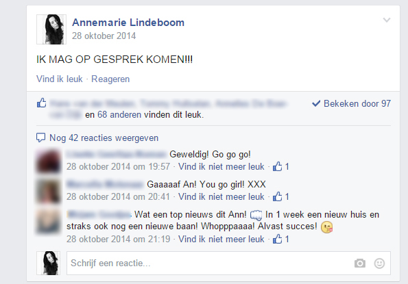 Nadat mijn LinkedIn-profiel inmiddels door een aantal mensen van HR en een aantal praatjesmakers bekeken is, krijg ik een week later een telefoontje. Ik mag op gesprek komen! En natuurlijk deel ik dit met de mensen die dit mede mogelijk gemaakt hebben, in de groep: