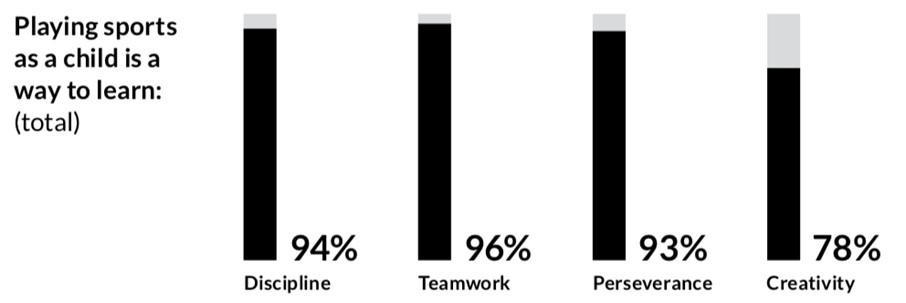 Vooral in landen waar kinderen een zeer gestructureerd leven leiden met beperkte eigen invulling kan sport dé manier zijn om autonomer te worden, zelf beslissingen te leren maken en andere leeftijdsgenoten te leren kennen. Wereldwijd vinden bijna alle respondenten van het onderzoek dat we uitvoerden dat sporten bijdraagt aan het leren samenwerken en het ontwikkelen van zelfvertrouwen en volharding. Daarnaast denkt 78 procent van alle respondenten – en zelfs 85 procent van de prosumers – dat het bijdraagt aan de ontwikkeling van creativiteit. Daarom is het ook zo fijn dat Nederlandse kinderen nog steeds mogen sporten tijdens de covid-19-pandemie.