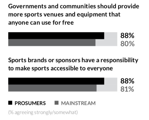 Sport moet niet alleen toegankelijker worden, het zou ook optimaal beoefend moeten kunnen worden. 86 procent van de prosumers vindt dat sportmerken of sponsoren een verantwoordelijkheid hebben om sportprestaties via innovaties te verbeteren.