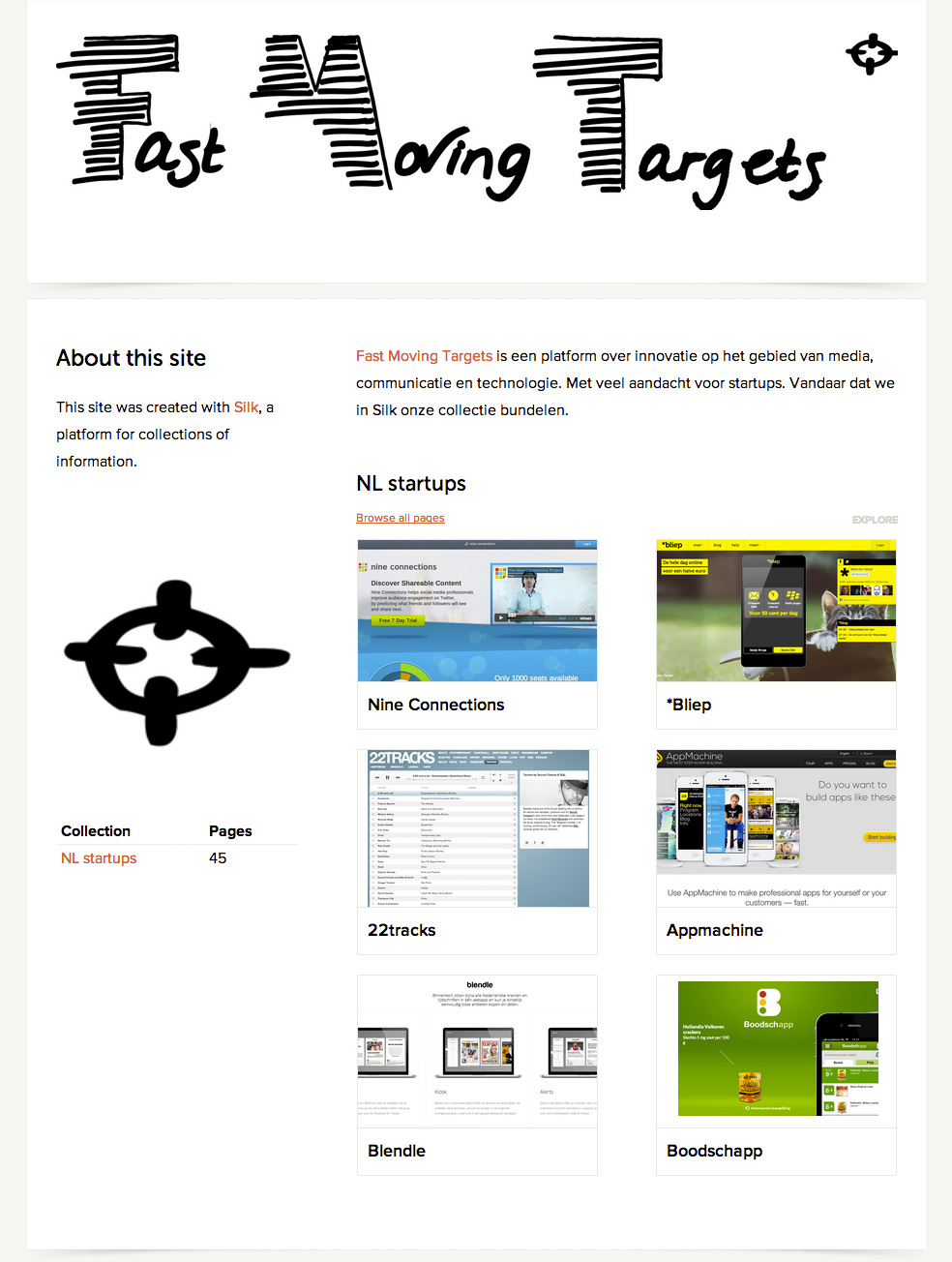 De Silk-site van Fast Moving Targets met een collectie van Nederlandse startups.