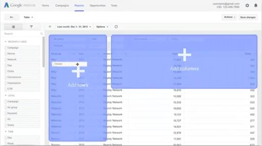 Google heeft begrepen dat veel marketeers vaak gebruikmaken van spreadsheets en functies, zoals draaitabellen om aanvullende analyses te maken. Deze functies worden daarom geintegreerd in AdWords, waarmee het via drag & drop opgesteld kan worden. Tijdens de presentatie werden hiervan al verschillende screenshots getoond.