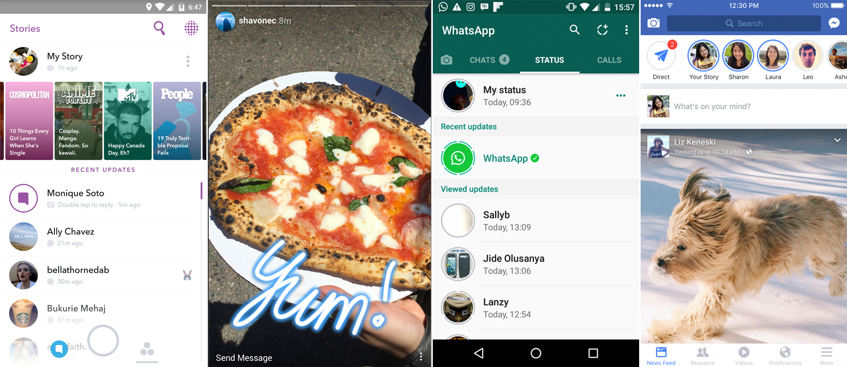 De laatste tijd komen steeds meer social media met Story-functionaliteit in hun apps. Snapchat was de eerste die de functie uitbracht in oktober 2013, gevolgd door Instagram (augustus 2016), WhatsApp (februari 2017) en, sinds vorige week, Facebook. Met de Story-functie kunnen gebruikers in hun ‘stories feed’ foto’s en video’s delen die door hun hele netwerk gedurende 24 uur te bekijken zijn, waarna de app ze automatisch verwijdert. Het is daarmee een manier voor gebruikers om (dagelijkse) momenten uit hun leven op een verhalende manier te delen. Maar, waarin verschillen de stories-functionaliteiten op de vier platformen? En welke biedt jou als marketeer de meeste mogelijkheden? Daarop heb je na het lezen van dit artikel een antwoord.