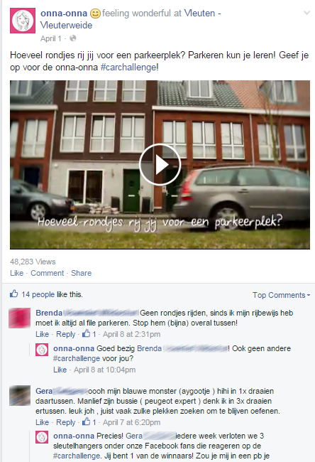 Een mooi voorbeeld is de carchallenge. Onna-onna besloot om een stereotype beeld, namelijk dat vrouwen onzeker achter het stuur zitten, te laten onderzoeken door een onderzoeksbureau en hier vervolgens met een knipoog een positieve twist aan te geven. Klanten konden zichzelf en elkaar nomineren voor de challenge, door te vertellen over een onzekerheid van zichzelf of de ander. “Als op dat moment niemand had gereageerd, dan waren we er niet verder mee gegaan. Maar het sloeg ontzettend aan.” “Zo wisten we dat we iets aan het doen waren wat echt leeft onder onze doelgroep”, beamen zowel Bernd als Geneviève. Op die manier gebruiken we de community om te toetsen wat werkt en niet, alsof je klanten bij je aan tafel zitten.