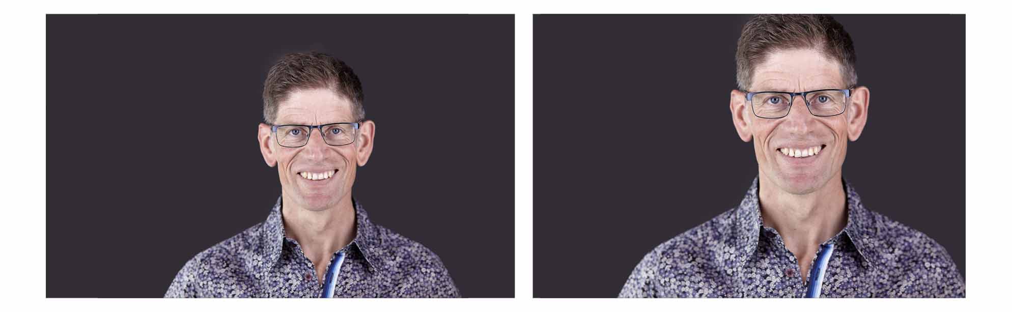 Op de linker foto keek je waarschijnlijk het allereerst naar het voorhoofd, bij de rechter keek je degene op de foto meteen aan. Mocht je nu pas opvallen dat de bovenkant van het hoofd nu niet op de foto staat, dan is dat exact de reden waarom niemand de bovenkant mist. De ogen op de juiste plek is belangrijker dan de bovenkant van het hoofd. Zorg daarnaast voor een neutrale, niet afleidende achtergrond.