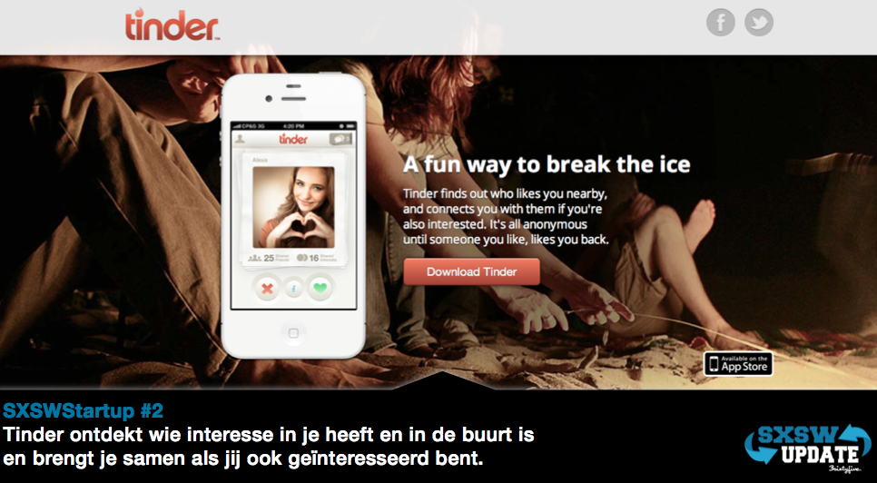 Nieuwe discovery-app Tinder brengt je in contact met mensen die je niet kent. De focus van deze app ligt op dating. Opvallend was dat deze app relatief veel aandacht kreeg, wordt dit het nieuwe manier van dating?