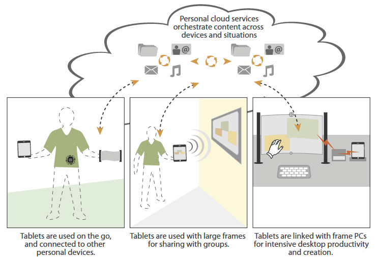 Op dit moment worden tablets hoofdzakelijk gebruikt voor browsen, media en informatie. Naarmate meer ontwikkelaars gebruik maken van de unieke eigenschappen van de tablet zullen er veel meer apps worden ontwikkeld om zelf actief te creëren. En dat is volgens Forrester voor veel gebruikers een belangrijke motivatie om eerder naar een tablet grijpen dan naar een laptop of een desktopcomputer. In een blogpost schrijft analist Frank Gillett: “Tablets aren’t the most powerful computing gadgets. But they are the most convenient.” Ze worden zowel thuis, onderweg en in combinatie met een groot scherm of andere apparaten gebruikt. De gegevens zullen steeds meer in de cloud worden opgeslagen.