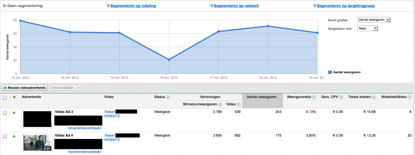 Ik heb de proef op de som genomen en 10 dagen lang, via beide mogelijkheden, een simpele videocampagne laten lopen. Het doel van deze test was in principe om met een zo laag mogelijk budget zo veel mogelijk zichtbaarheid te creëren onder een relevante doelgroep.