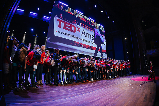 Ook TEDx-organisator Houssem Aoudi uit Tunesië zegt TEDxAmsterdam tot zijn favorieten te rekenen. Met zichtbaar enthousiasme vertelt hij over de familie van gamechangers die de TEDx-organisaties volgens hem vormen. “Het klinkt misschien idealistisch, maar deze beweging draagt bij aan een betere wereld.” Dat klinkt overtuigend uit de mond van iemand die onder dictatuur leefde en de spanningen van de Arabische lente meemaakte. Hij wijst ook op de bijdrage van de Amsterdamse organisatoren bij TEDxBaghdad. “Wat ze daar hebben geflikt, is ongelooflijk.”