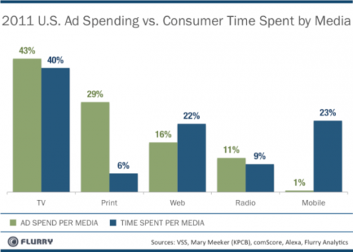 “Dit zie je ook in de cijfers van bijvoorbeeld Comscore. Die laten zien dat de verhouding tussen het gebruik van een mediumtype in opkomst niet in verhouding is met de advertentiegelden die er uitgegeven worden. Voor mobiel zien we dat consumenten bijna een kwart van hun mediabestedingstijd via mobiele devices besteden, adverteerders besteden echter slechts enkele procenten van hun budget aan dit mediumtype. Omgekeerd geldt hetzelfde voor mediumtypes die steeds minder gebruikt worden, maar waar nog wel verhoudingsgewijs heel veel advertentiegeld naartoe gaat. Er zit nu eenmaal een bepaalde traagheid in de markt: adverteerders moeten wennen aan de mogelijkheden en vertrouwen krijgen in het resultaat.”