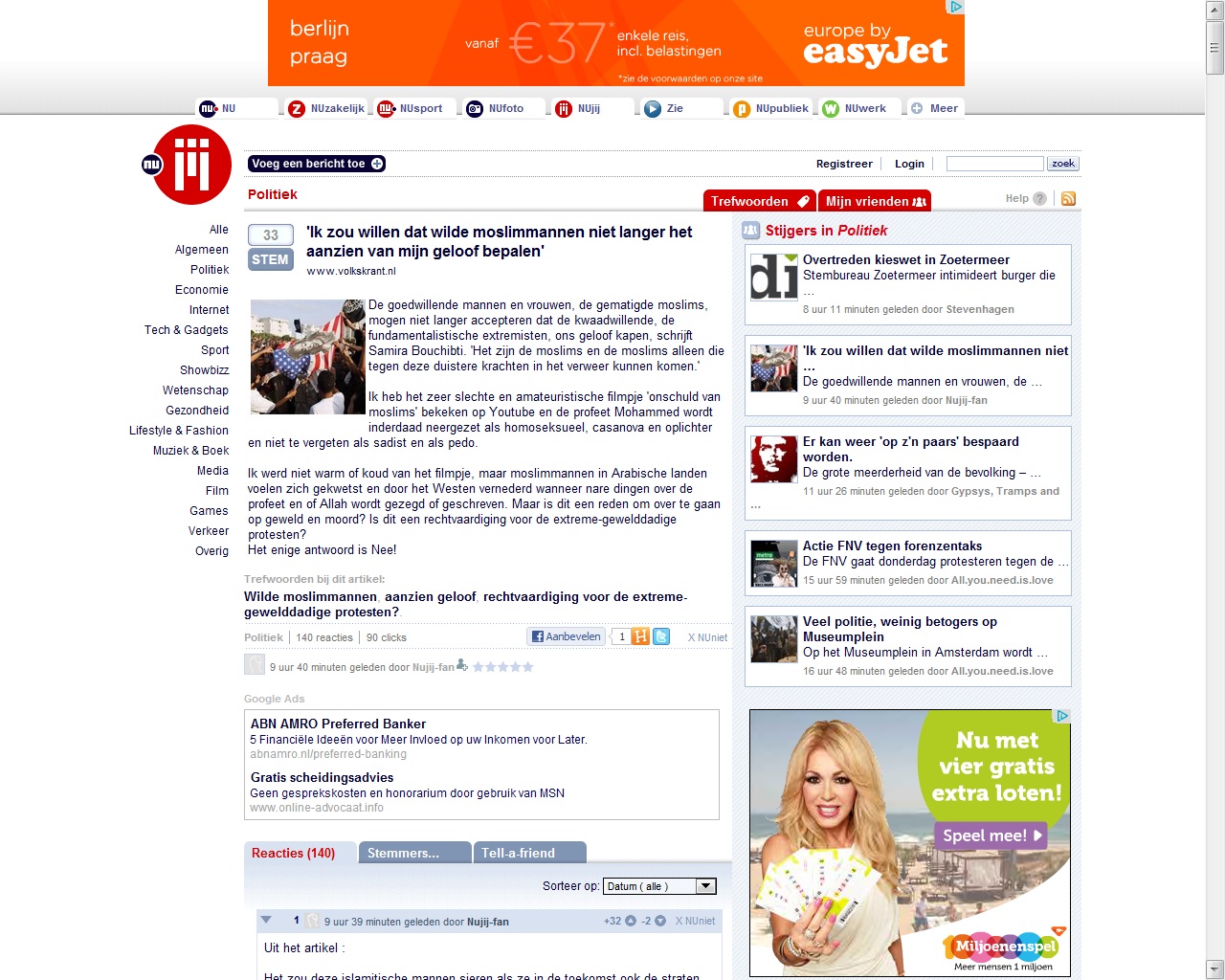 “Wij hebben daar nauwelijks mee te maken, de adverteerders weten dat het bij ons niet zo werkt. NU.nl is een nieuwssite, we zetten objectiviteit en geloofwaardigheid voorop. Door zulke vermengingen zouden we onze geloofwaardigheid direct ondermijnen. Je zult dus nooit een artikel op de site zien staan dat ‘lekker aansluit’ bij een advertentie. Ook Sanoma staat er 100% achter dat sales en redactie gescheiden zijn.