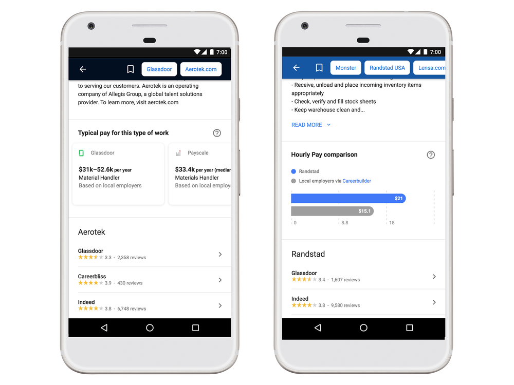 Met name die salarisindicatie vinden ze belangrijk bij Google, omdat dat informatie is die veel mensen willen, maar slechts door een handjevol bedrijven wordt aangegeven. Google gaat ook tonen welk salaris volgens hen bij de baan hoort, zodat je goed beslagen ten ijs komt als het gaat om salarisonderhandelingen.
