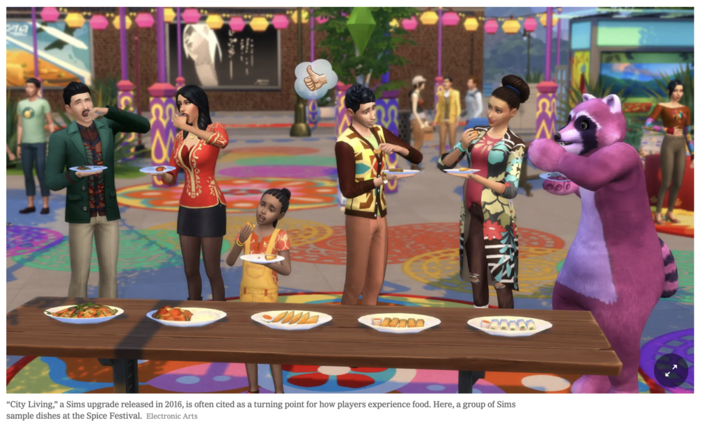 De populairste nieuwe eetervaringen lijken van voedsel te zijn dat niet eetbaar is. De hipste nieuwe eetgelegenheid bevindt zich in De Sims, zo meldt de NYT. De 22 jaar oude simulatie-videogame is geëvolueerd naar een wereld waar spelers kunnen boeren, foerageren, koken en alles leren over de manieren waarop mensen en culturen eten ervaren. Het grote voordeel is dat je geen last hebt van calorieën omdat vooralsnog het digitale eten niet verteerbaar is.