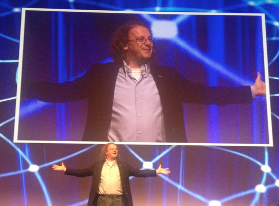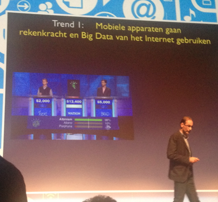 Waar zijn verhaal naar toe ging is dat de digitale wereld aan het versmelten is met de fysieke wereld. Van atomen naar bits, cognitive computing wordt het nu genoemd.
