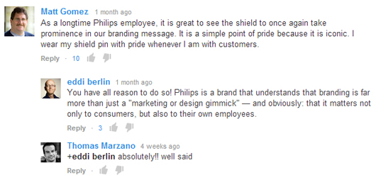 Dat designtraject begon in januari 2013 en laat ook zien dat fysieke ontmoetingen belangrijk blijven in een tijdperk van social technologieën. Thomas organiseerde een interne sessie in Amsterdam, die hij doopte tot ‘The good, the bad and the ugly’. Ongeveer 50 collega’s uit verschillende landen bogen zich samen over de toenmalige merkidentiteit van Philips: wat waren mooie uitingsvormen daarvan (the good), waar werden de design-guidelines gebroken (the bad) en waar werden de guidelines nageleefd maar liet het resultaat te wensen over (the ugly)? Lange en leerzame discussies ontvouwden zich. “Het best denkbare startpunt”, zegt Thomas. “Iedereen ging na drie dagen terug aan het werk met een gedeelde probleemanalyse, een gedeeld toekomstbeeld en een gevoel van eigenaarschap. Dat is uiteindelijk bepalend geweest voor het succes van onze rebranding.”