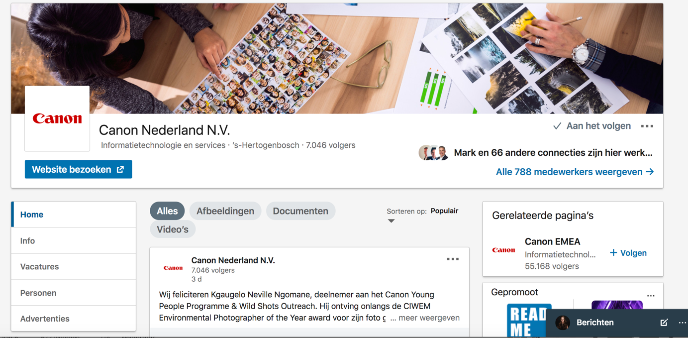 Net zoals bij een persoonlijk profiel kun je nu ook filteren op foto’s, video’s of documenten bij een bedrijfspagina.