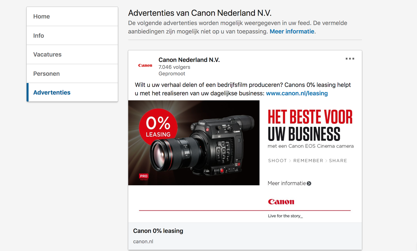 Wil je weten of het bedrijf adverteert en met welke advertenties? Klik dan op ‘Advertenties’ en je ziet een overzicht van alle advertenties.