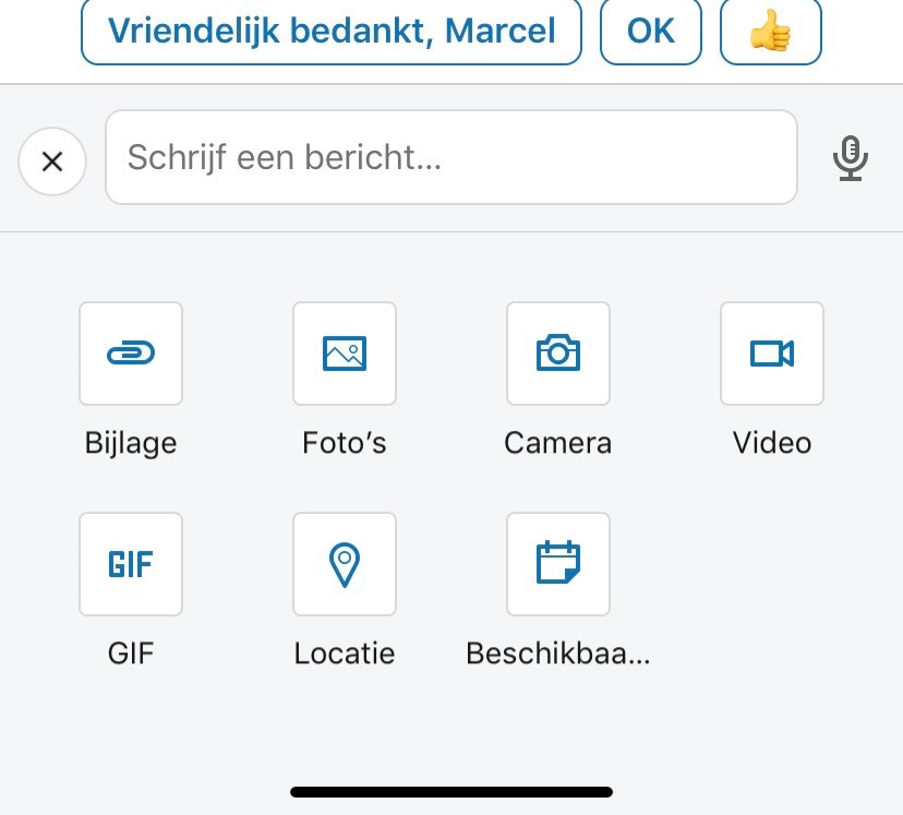 De chat van LinkedIn is enorm uitgebreid. Naast het versturen van foto’s, gifjes, spraakberichten, bijlages en je locatie, kun je via de mobiele app nu ook een videobericht sturen én je agenda delen.