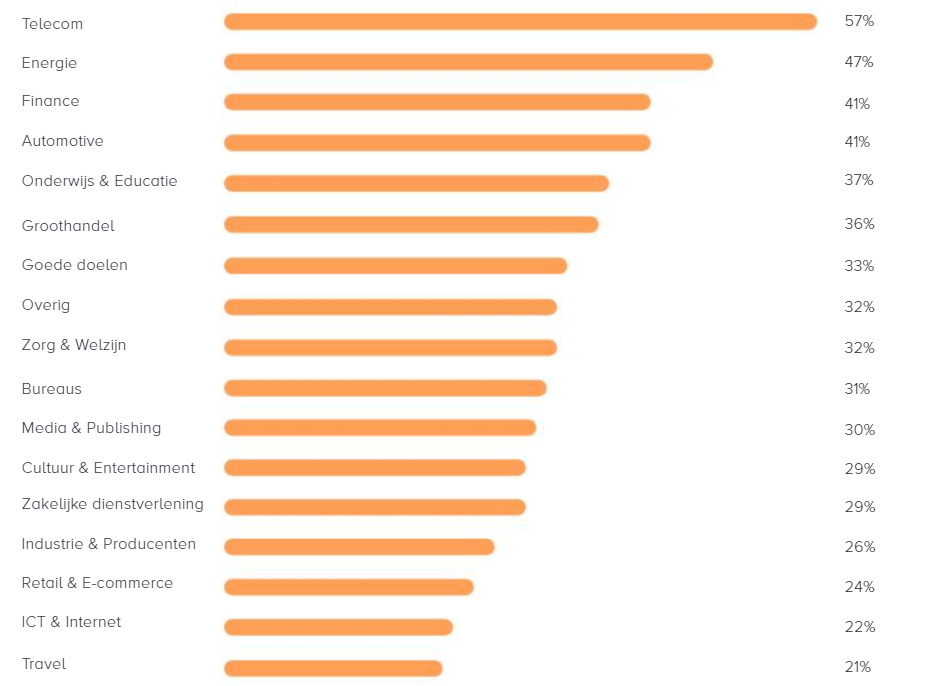 De open-ratio per sector kan flink verschillen. Toch zegt een hoog percentage ook weer niet alles. Volgens dit onderzoek is het bijvoorbeeld duidelijk dat de travel-industrie slechter presteert dan bijvoorbeeld een telecomprovider. Het verschil in resultaten kan te maken hebben met het feit dat er maar maximaal een paar keer per jaar interesse is in het boeken van een vakantie en daardoor, in de tussenliggende periode, de mails van een reisorganisatie minder interessant zijn. De mails van de telecomprovider zijn vaker relevant, aangezien de meeste mensen een doorlopend abonnement hebben en daardoor geïnteresseerd zijn in deze content. Het is belangrijk om je e-mailmarketingresultaten af te meten tegen de juiste benchmark-ratio’s.