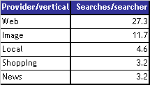 Als we vervolgens kijken naar het individuele zoekgedrag, dan blijkt dat web search nog steeds het meest populair is. Gemiddeld maakt een zoekmachine gebruiker 27,3 keer per maand gebruik van web search. Daarna ligt het individuele gedrag beduidend anders, ie. gemiddeld wordt 11,7 keer gebruik gemaakt van image search, 4,6 keer van local search, 3,2 keer van shopping search en ook 3,2 keer van news search.
