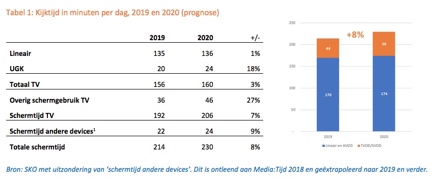 De kijkminuten per dag zijn in onderstaande tabel weergegeven voor 2019 en 2020. Voor 2020 is sprake van een inschatting op basis van de eerste halfjaarcijfers.