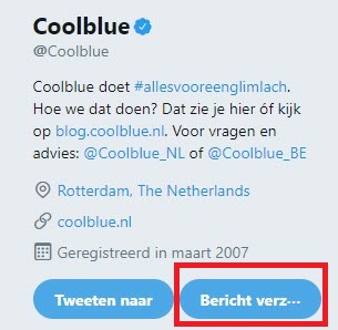 - Plaats een DM-knop binnen je Twitter-account, zodat klanten sneller (en niet open en bloot) één op één met je kunnen communiceren: