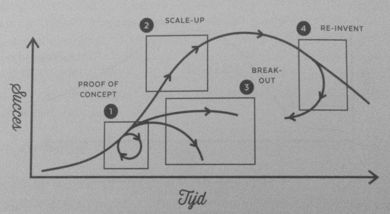 Aan de hand van de levenscyclus van organisaties schetst Schevernels de organisatiefases van proof of concept tot end-of-life-cycle. En alhoewel iedere ondernemer zijn weg naar succes probeert te plannen, maakt hij duidelijk dat deze weg alles behalve een vloeiende lijn is. De weg zit vol met verrassingen, kansen en bedreigingen.