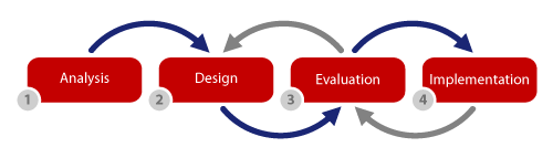 Het proces van User Centered Design kan gestructureerd worden in vier fases: analyse, ontwerp, evaluatie en implementatie. UCD is geen lineair proces, een cyclus of een deel van de cyclus zal doorgaans meerdere keren doorlopen worden.