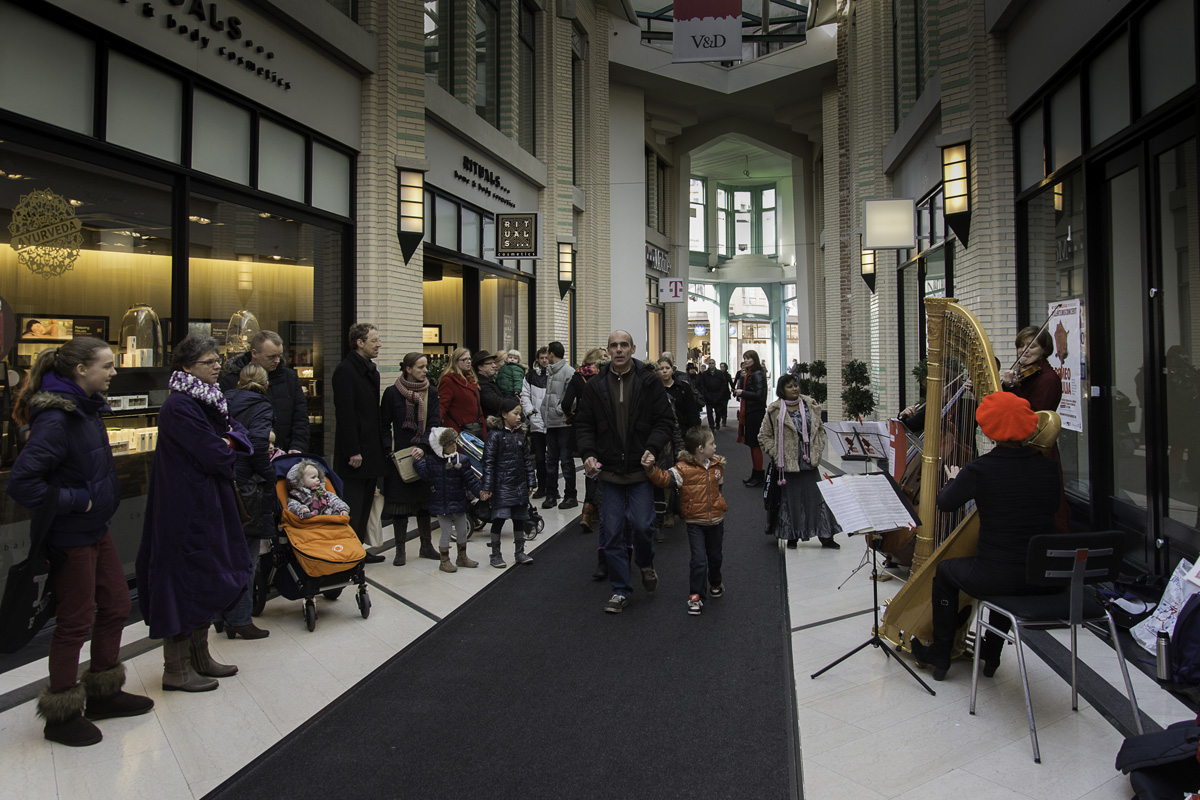 Ook de manier van promoten die Het Gelders Orkest hanteert is op de nieuwe doelgroep aangepast. Zo speelden enkele orkestleden voor de promotie van het Valentijnsconcert muziek op het centraal station van Nijmegen en in het musiskwartier in Arnhem (zie foto).