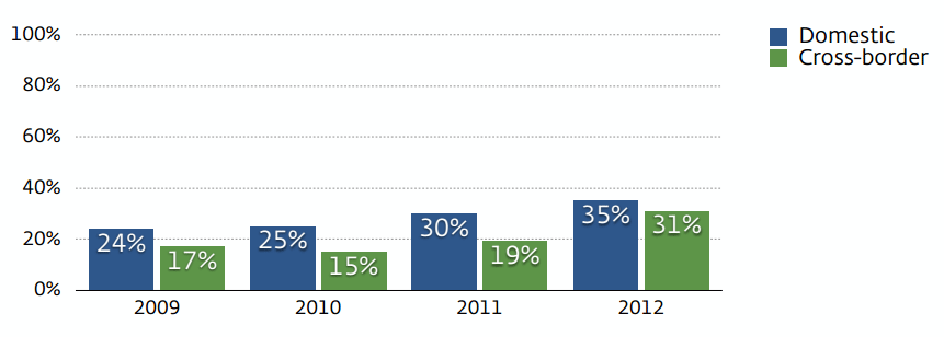Bij Frankrijk liggen de verhoudingen weer iets anders, 58 procent koopt hier online producten uit Frankrijk en maar liefst 21 procent koopt online iets uit het buitenland. Nederland gaat weer dezelfde kant op als het Verenigd Koninkrijk en Duitsland met 75 procent binnenlandse aankopen en 16 procent buitenlandse aankopen. België staat hier weer een beetje achteraan met 35 procent online aankopen binnen België en 33 procent daarbuiten. In België liggen de cijfers wel het dichtste bij elkaar vergeleken met alle andere landen. Hoewel België niet zo hoog scoort als de rest van Europa, is er wel degelijk een stijging te zien in de online aankopen, zowel nationaal als internationaal.