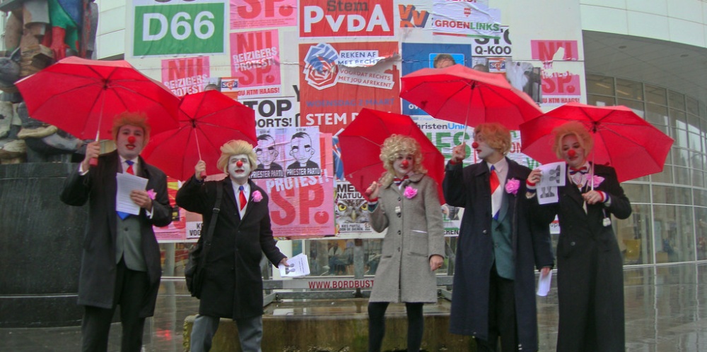 De Socialistische Partij springt eruit met een wel heel atypische campagne-gimmick: een knalrode Ferrari. Onder het motto ‘Formule L’ rijdt fractievoorzitter Lilian Marijnissen langs bij een uiteenlopend gezelschap mensen die met haar gaan rondrijden en praten over politiek. Visueel sterke communicatie, maar een poenerige sportauto past bepaald niet bij de SP, die zich verzet tegen graaiers en daarbij inzet op nivellering van inkomens.