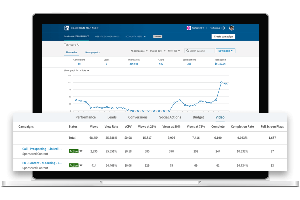 Er zijn verschillende manieren waarop je video-advertenties kunt toepassen op LinkedIn. Je kunt kiezen voor een Sponsored Content Campaign om een video op je bedrijfspagina te promoten of Direct Sponsored Content om een specifiek publiek te targetten met video-advertenties die je daarvoor niet zelf op je pagina hoeft te delen, maar die enkel in de tijdlijn van je target audience naar voren komt.
