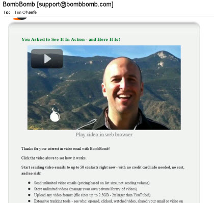 - De mogelijkheden zijn onbeperkt. Video in e-mail zet je gemakkelijk in voor diverse doeleinden. Of het nu een e-mail is waarbij je de laatste updates uit ‘Utopia’ te zien krijgt of een trainingsvideo waarin je je software kort uitlegt. Of een leuke aanbiedingsvideo. Het kan allemaal.