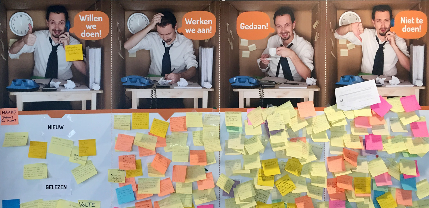 Op de afdeling bij Simyo hangt een ‘wall of change’, waarop alle klantideeën worden vastgelegd. Een muur vol post-its, verdeeld in de drie categorieën: “willen we doen”, “werken we aan/gedaan” en “niet te doen” (zie de grote foto bovenaan dit artikel). Zo heeft Simyo doorlopend contact met haar klanten en kunnen nieuwe ideeën vrij simpel tot uitvoer worden gebracht. De persoonlijke relatie met de klant en de wendbaarheid lijken te werken. Vijf keer op rij zijn ze door de Consumentenbond uitgeroepen tot beste telecomprovider van Nederland en uit onderzoek is gebleken dat ze ook nog eens veruit de meeste enthousiaste klanten hebben.