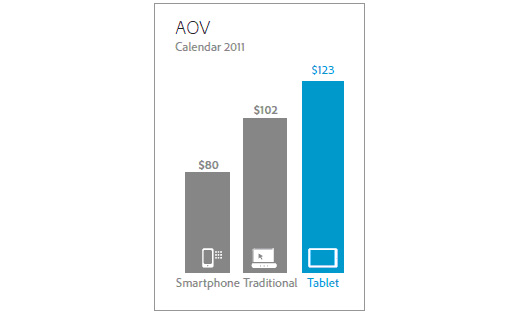 Begin januari heeft Adobe een onderzoek gedaan onder 150 retailers (gezamenlijk goed voor 16.5 miljard bezoekers) om te analyseren wat de gemiddelde aankoopwaarde is van een consument die via een smartphone, tablet of desktop is gekomen. Uit het onderzoek, waarvan de resultaten worden beschreven in het Digital Marketing Insights report, kwam naar voren dat de gemiddelde aankoopwaarde van een bezoeker via een tablet $21 hoger ligt dan van een desktopbezoeker. De aankoopwaarde van consumenten via een smartphone ligt lager dan een desktop. Gezien de sterke stijging van het aantal tablets is het van belang dat veel webwinkels de shop geschikt maken voor tablet gebruikers.