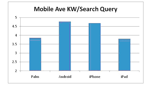 Volgens het webblog Search Engine Watch blijkt dat de zoekwoorden die door mobiele gebruikers worden gebruikt langer en meer gericht zijn dan desktop gebruikers (vooral Android en Iphone gebruiker). Tevens zitten er verschillen tussen de verschillende mobiele devices. In veel gevallen betekent dit dat de mobiele gebruiker verder in het aankoop of zoektraject zit en dus beter weet wat hij wilt. Degenen die brede zoekwoorden gebruiken in Google zitten immers meer in de oriëntatiefase.