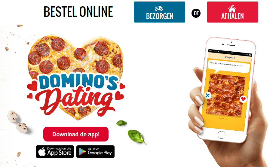 Nooit meer alleen pizza eten met de Domino’s dating-app (heel leuk om als interactief element toe te voegen in je e-mail):