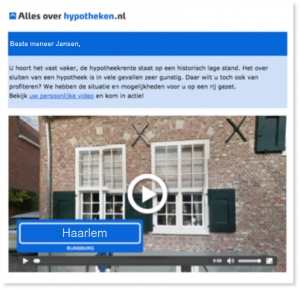 Verklaar de liefde voor je klant via video. Beeld blijft 70 procent beter hangen dan tekst. Om video’s te bekijken hoef je niet meer door te klikken naar een achterliggende landingspagina: video’s worden direct in de e-mail afgespeeld. Let er dus op dat de call-to-action van je campagne in de e-mail of video is verwerkt en niet alleen op de landingspagina. Nog beter werkt een gepersonaliseerde video.