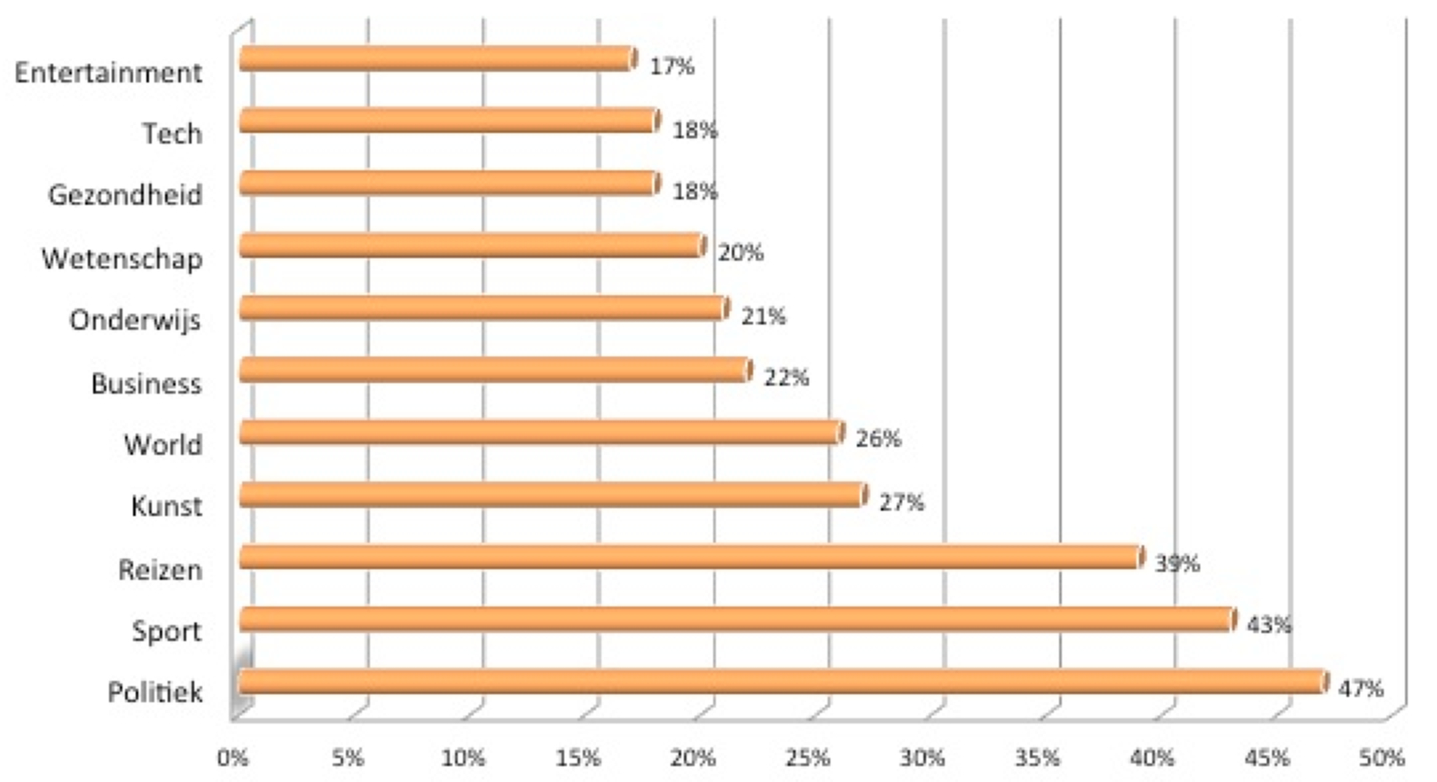 Politieke onderwerpen worden het meest aangejaagd door informatie van buiten Twitter en entertainment het minst. Dat laatste wordt vooral veroorzaakt doordat veel sterren zelf heel actief zijn op Twitter.