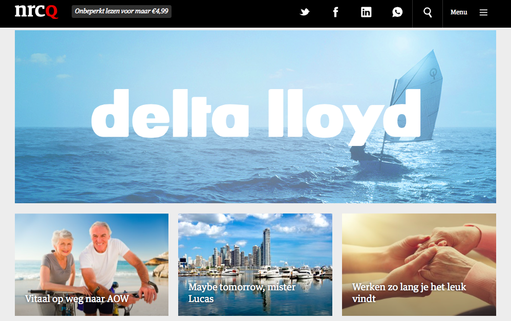Afbeelding 1: Fragment van een gesponsord verhaal van Delta Lloyd op NRCQ.