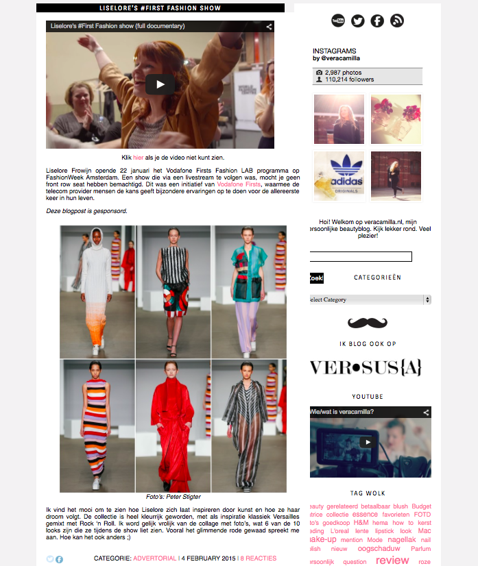 Afbeelding 3: met een advertorial op Vera Camilla deelde Vodafone de Firsts-documentaire van Liselore Frowijn.