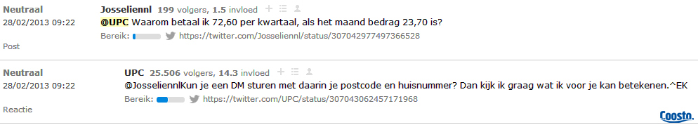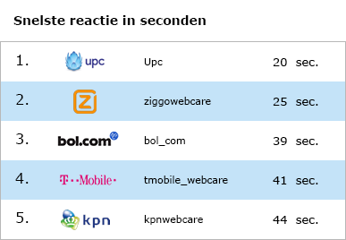 UPC heeft tijdens het onderzoek de snelste reactie geplaatst. Deze werd slechts 20 seconden na de vraag geplaatst. Er waren nog enkele hele snelle webcarereacties: