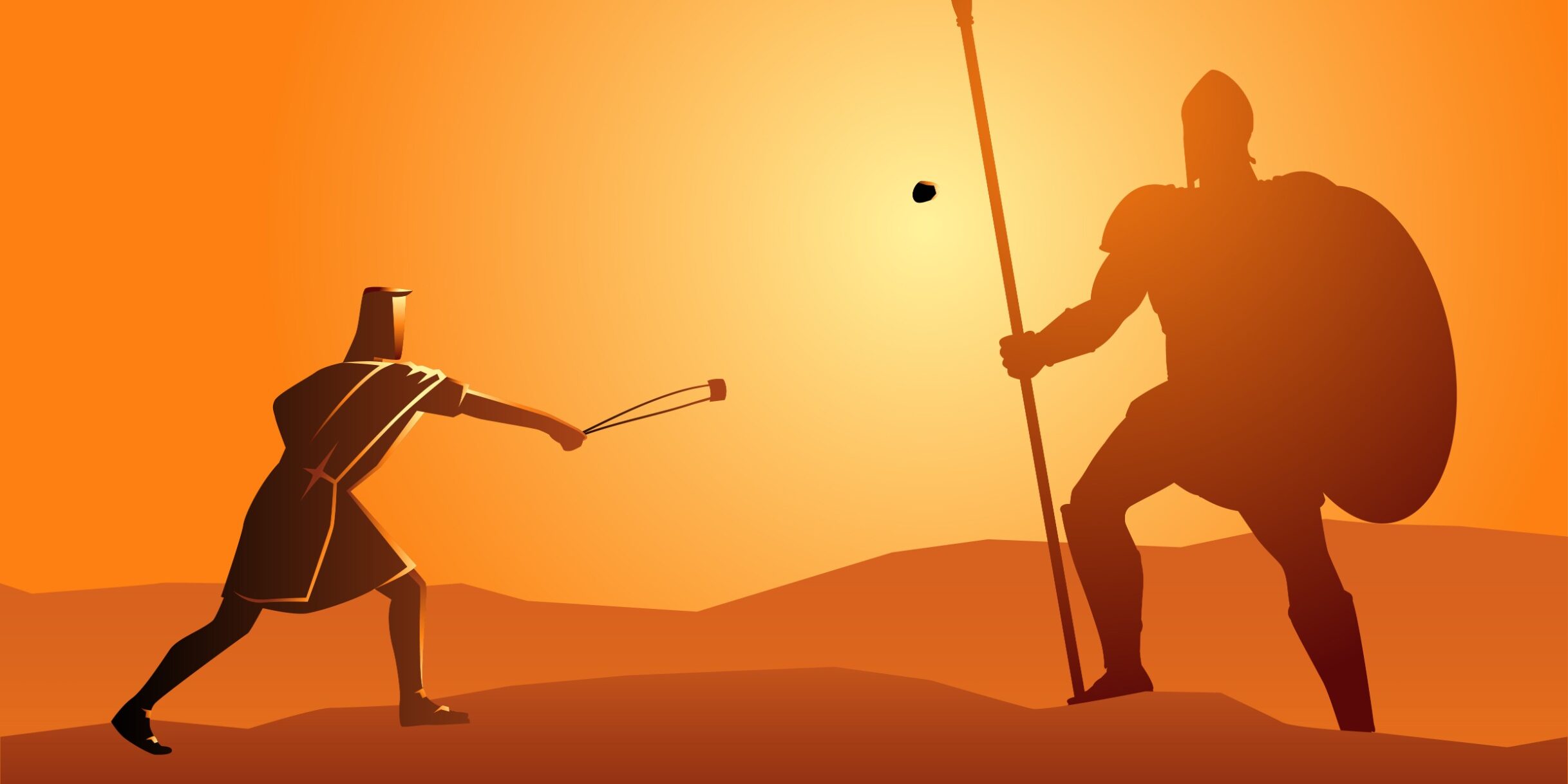 Oliereuzen, energiebedrijven, big tech en hedgefunds hebben veel financiële middelen die ze inzetten om hun machtspositie vast te houden. Als een Goliat die neerkijkt op de kleine David en hem z’n hete adem doet voelen om een machtspositie te behouden.